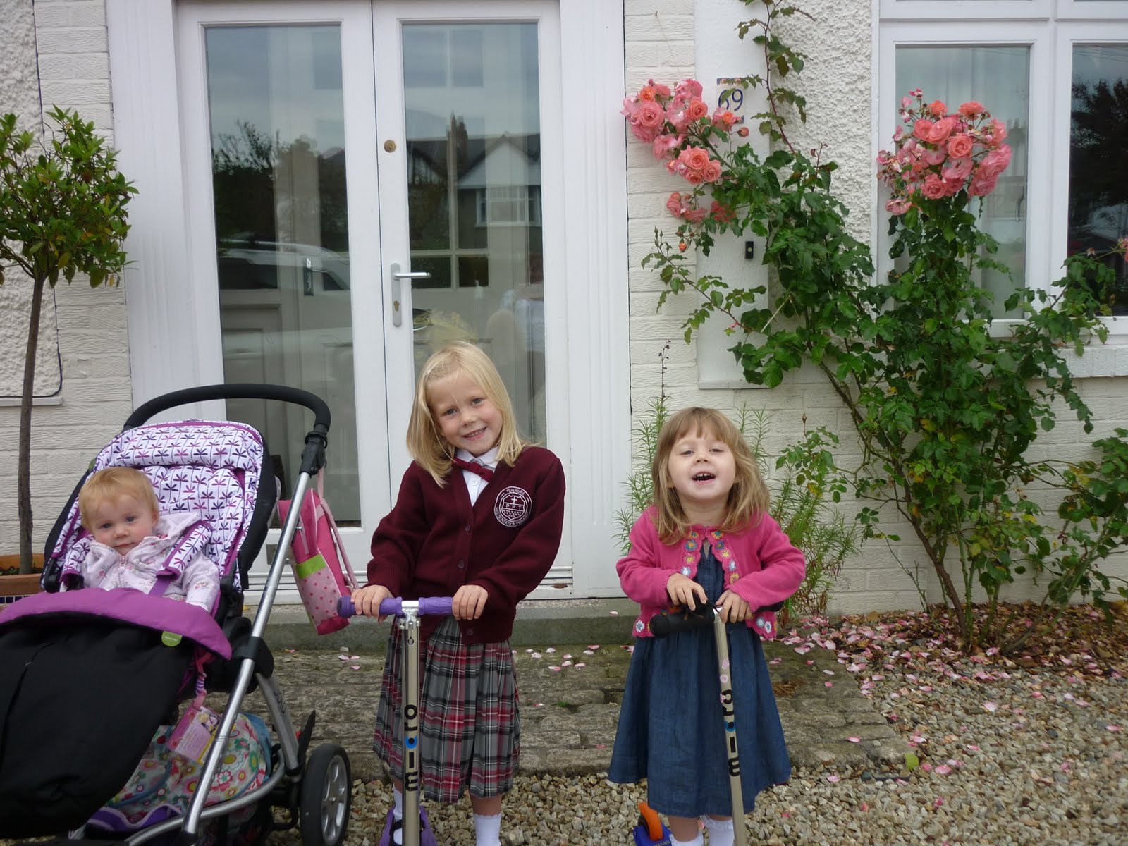 Yesterday, Daisy a little older and a lot wiser. No tears, no fear, only excitement and anticipation. A new haircut, shorter, more manageable, a little older. She has grown into her uniform, no longer looking quite like Orphan Annie with a skirt to her ankles and sleeves past her fingertips. And Poppy…. how she has changed, and grown and blossomed. A little taller, a lot happier. A new haircut, shorter, more manageable, a little older. She has grown into her skin, no longer suffering from malnutrion, her gluten free diet nourishing her body and mind. And of course, the new addition. Ruby. Bursting from my belly last year, now a glorious bouncing, busy, boisterous baby.
