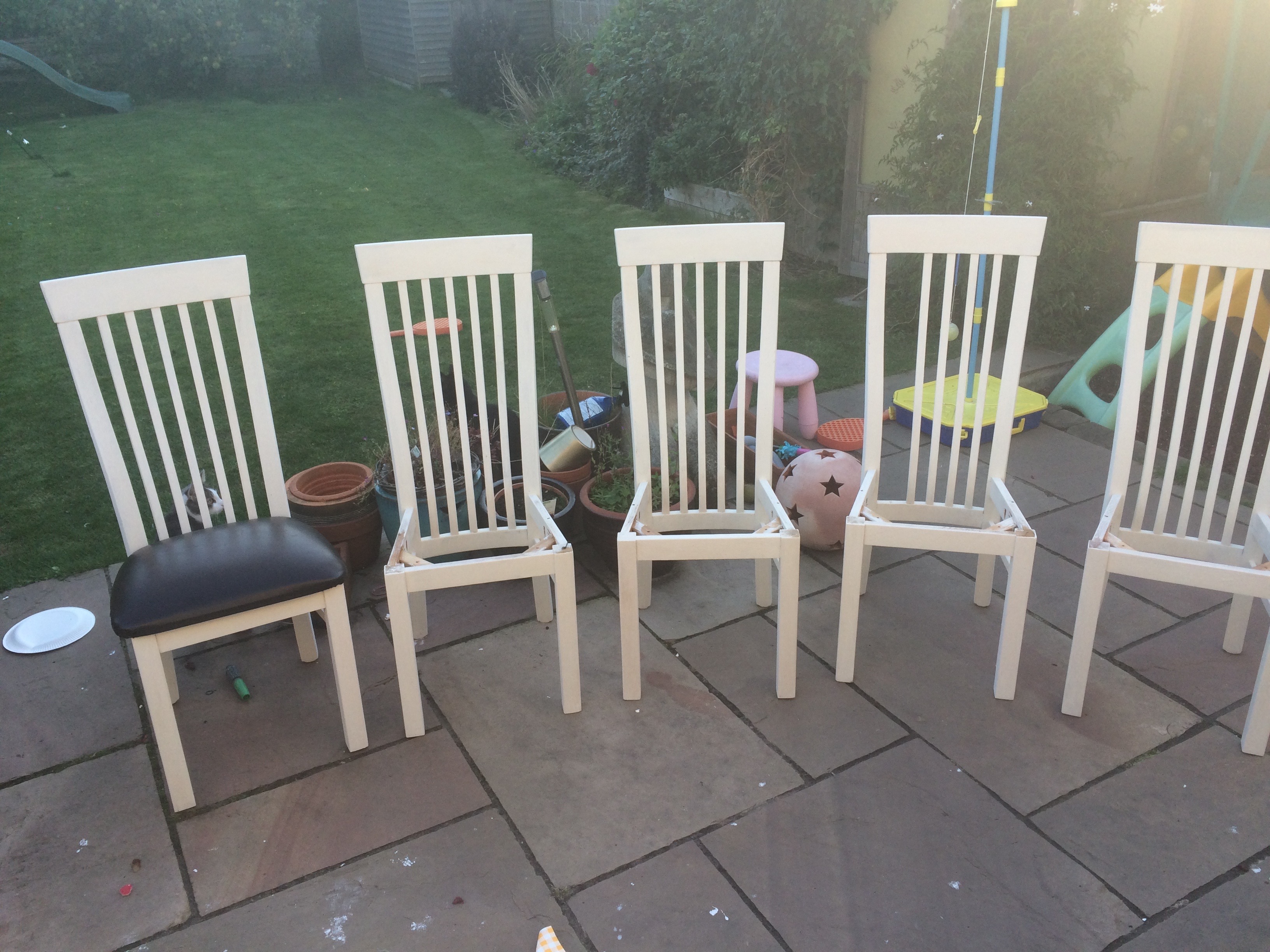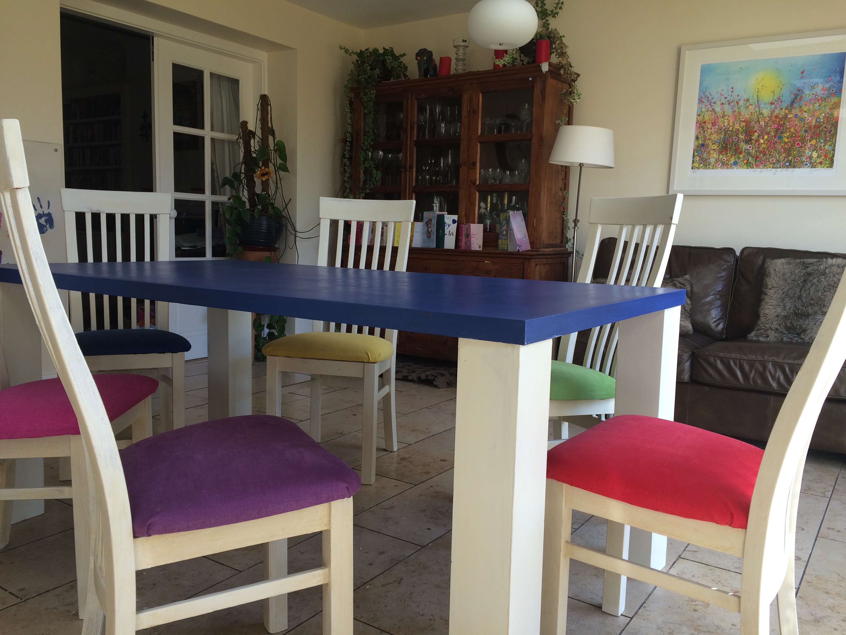 And so, as I let go of the past, I feel a desperate urge to repaint and upholster bits of my life.   IMG_3979Mum and Dad bought our table and chairs for our wedding present and for 13 years they have served me well – early marriage dinners for two, mulch splattered baby years, manner-making toddler years, family dinners, dinner parties, birthday parties, Christmas parties, homework table, my desk table. I have written a book sitting at that table. My Mum and I had endless cups of tea at that table. My children have grown up at that table. My marriage began and ended at that table.